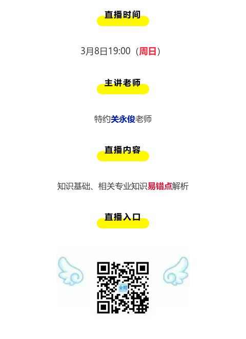 在考试中,存在疑惑的朋友,一定要观看此次直播,直播解析结束之后,关老师还会与考生进行互动答疑,针对性解决考生复习中存在的问题。