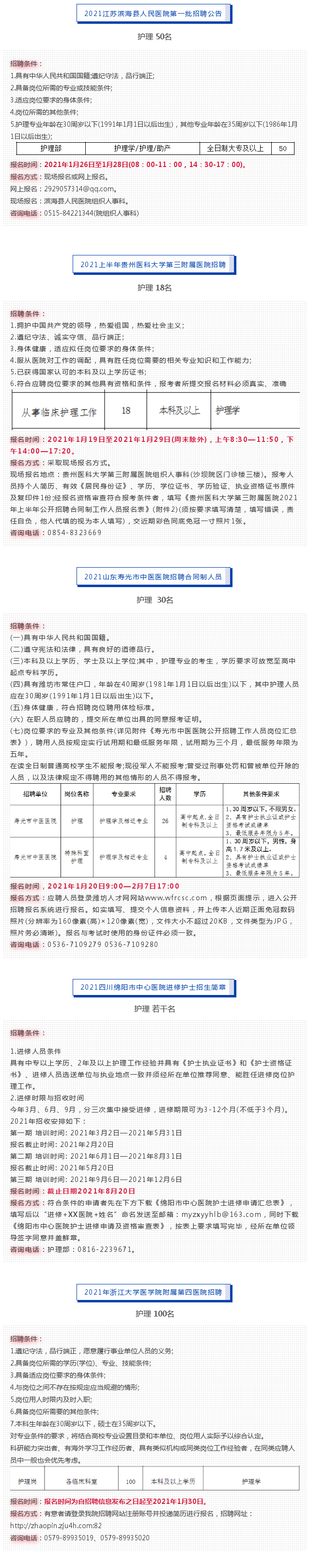 每一位学习护理的小伙伴,无论是应届生还是往届生,都会面临的找工作的问题。想找到一份合适的工作,招聘信息筛选是必须的。由于医院规模不同,发放招聘信息渠道亦不一样,小编整理最新招聘信息具体详情如下: