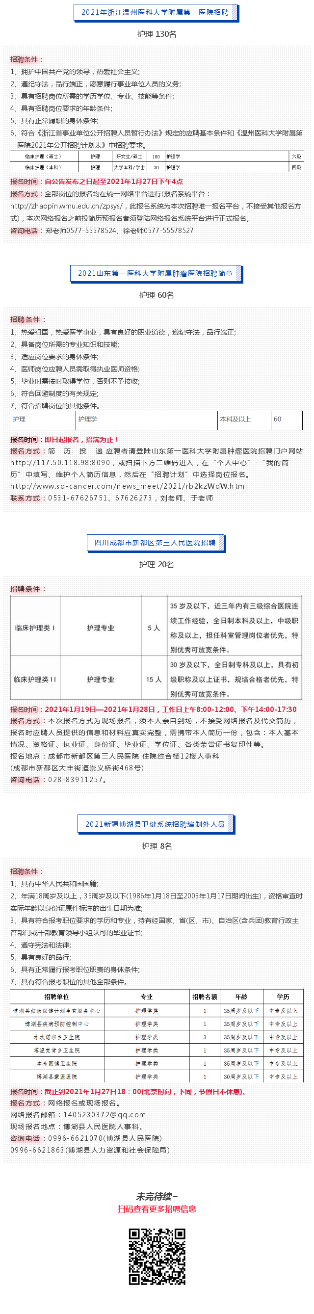 关于护士招聘的相关信息,小编就整理到这里,想获取更多护士招聘信息,关注护士招聘频道即可。