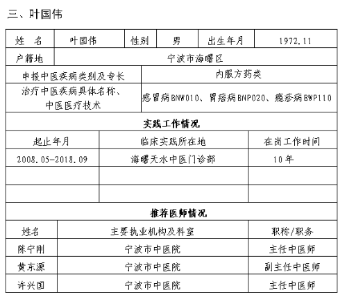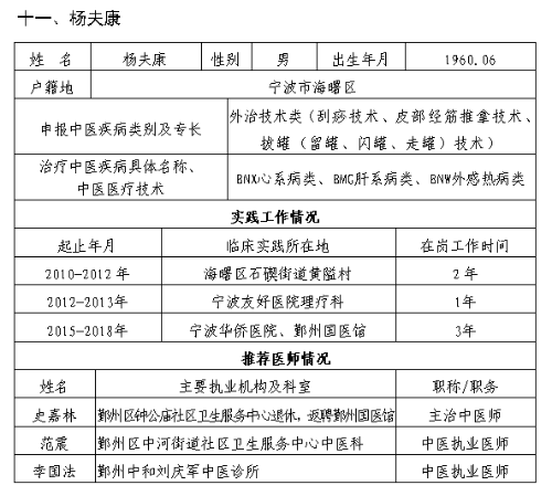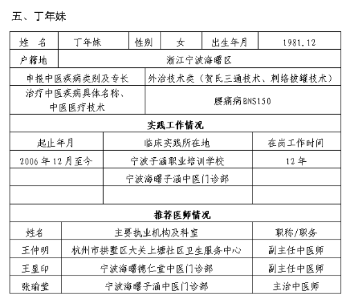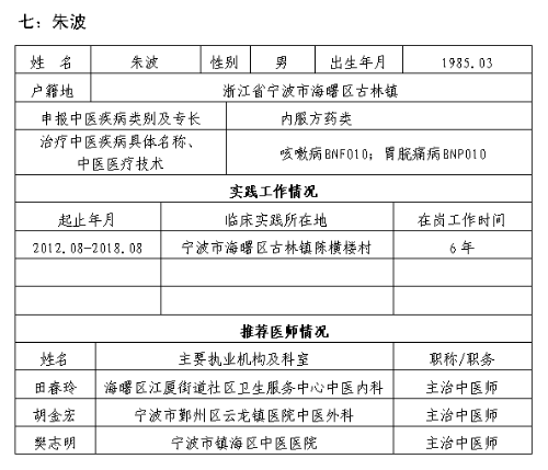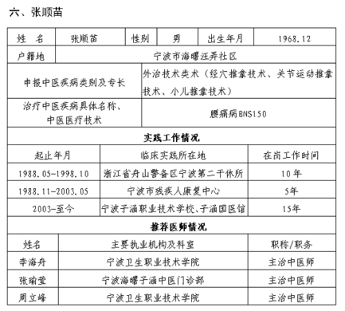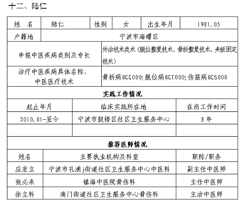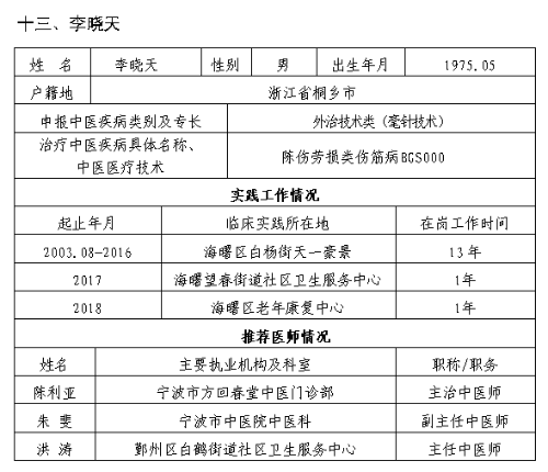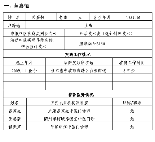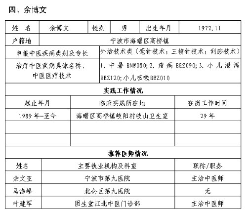 根据《浙江省中医医术确有专长人员医师资格考核注册管理实施细则》,我局对苗嘉恒等13名同志(排名不分先后)申请中医医术确有专长(多年实践)人员医师资格考核情况进行了初审,基本符合报名要求,现将其基本情况向社会予以公示: 公示期限7天,从2018年9月19日至2018年9月25日止。如有异议,请在2018年9月25日前,向海曙区卫生和计划生育局医政中医科反映。来电者请上报真实身份,来信请署真实姓名和联系电话,信函以到达日邮戳为准。以组织名义反映问题的应加盖公章。海曙区卫生和计划生育局地址:海曙区苍水街131号行政中心7号楼206室,邮编315100.联系人:王老师,联系电话:0574-55889786. 以上是“宁波海曙区中医医术确有专长(多年实践)人员相关情况公示”的全部内容,由博傲网校小编为您整理,如果您觉得这篇文章还不错,可以分享给身边的朋友。 19年来,我们只做医考培训,我们不是招生最多的,但我们是合格率最高的!医考热线电话:400-6286615 你想知道医考合格的秘籍吗?扫描微信二维码直接加QQ群,即可提前获取最新必考知识点或 最新考试资讯: 临床执业/助理医师问题讨论群:249310992 扫一扫直接加QQ学习群 扫描立即做题 [海量试题][历年真题]等你练!