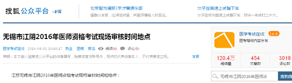 媒体来源搜狐网。 江苏无锡市江阴2016年医师资格考试现场审核时间和地点: 一、执业医师报考条件: (一)2016年毕业的硕士、博士研究生 1、报名表、身份证明复印件。 2、本科学历、学位证书复印件。 3、博傲网校提醒:所在院校出具的考生所学专业、学位、于当年毕业的证明,以及在校学习期间有相当于大学本科的一年生产实习和一年以上严格实践训练的证明。当年8月31日前需出具毕业证书原件,核对专业。 (二)2015年及以前本科毕业生 1、报名表、身份证明复印件、学历证明复印件、学位证书复印件、教育部学历证书电子注册备案表。 2、试用期满一年并考核合格证明。 (三)2014年前(包括2014年)已取得执业助理医师资格的大专生 1、报名表、身份证明复印件、学历证明复印件、教育部学历证书电子注册备案表。 2、所在单位出具的在执业医师指导下执业期满二年并考核合格的证明。 3、执业助理医师资格证书、执业证书复印件。 (四)2011年前(包括2011年)已取得执业助理医师资格的中专生 1、报名表、身份证明复印件、学历证明复印件,教育部学历证书电子注册备案表,招生计划。 2、执业助理医师资格证书、执业证书复印件。 3、取得大专及以上学历后(入学时间必须在取得执业助理医师资格后)执业期满两年并考核合格的证明。 (五)其它符合条件的考生,所交材料参照上述相关条款。执业时间从取得执业助理医师执业证书之日起,至报考当年的八月三十一日 二、执业助理医师报考条件: (一)2015年及以前大专毕业生 1、报名表、身份证明复印件、学历证明复印件、教育部学历证书电子注册备案表。 2、试用期满一年并考核合格的证明。 (二)符合《医师资格考试报名资格规定(2014版)》的本省中专毕业生 1、报名表、身份证明复印件、学历证明原件、复印件。外省中专原则上不受理,确需报名的,需提供招生计划。 2、试用期满一年并考核合格的证明。 (三)师承和确有专长人员 1、报名表、身份证明复印件。 2、《传统医学师承出师证书》或《传统医学医术确有专长证书》。 3、《传统医学师承和确有专长人员医师资格考核合格证书》。 4、试用期满一年并考核合格的证明(取得出师考核合格证书起至报名当年8月31日止)。 (四)其它符合条件的考生,所交材料参照上述相关条款 三、现场审核程序 (一)考生向报名点提交以下材料(所有材料除报名成功通知单和照片以外均需一式两份,并按以下顺序分开,左上角用回形针订好,材料袋现场审核时由卫计委提供): 1、《医师资格考试网上报名成功通知单》(网上报名成功后考生需登录报名系统,确认填报信息准确后打印报名成功通知单)。 2、本人有效身份证及复印件。本人有效身份证包括二代身份证、军官证、文职干部证、护照、台、港、澳考生来往大陆的有效证件。 3、毕业证书、学位证书原件及复印件,《教育部学历证书电子注册备案表》(该备案表请在中国高等教育学生信息网www.chsi.com.cn查询下载,考生应注意查询有效期。应于2016年5月31日前可以复查到),无法提供学位证书的需提交书面文字说明情况。 4、试用机构出具的试用期考核合格证明(空白表见附件),试用机构名称必须与医疗机构执业许可证上的名称一致。 5、试用机构的《医疗机构执业许可证》复印件。 6、执业助理医师申报执业医师的,还应提交执业助理《医师资格证书》、《医师执业证书》原件及复印件、执业时间和考核合格证明(执业助理医师申报执业医师考试的试用期按规定执行)。 7、本人照片4张。要求与报名上传的本人照片相同。贴在一张A4纸上,写上姓名、单位。考生报名照片按规定用上传方式(摄像头拍摄无效),必须 符合以下要求:考生报名照片应当为近6个月内的2寸免冠正面半身彩色白底照片(该照片同时用于《医师资格证书》和《医师执业证书》的制证,不得更换)。 8、2016年毕业的研究生、2015年毕业的新考生和助理执业医师升执业医师试用期时间不足的需提供《承诺书》(见附件)。执业时间计算从注册之日起至2016年8月31日止。 9、申报短线加试的考生根据国卫医考办发〔2015〕5号文件精神,须提交《短线医学专业加试申请表》(见附件)。 (二)考生进行信息确认,确认无误后签名(如因考生核对不仔细而由此造成的后果由考生本人承担)。 (三)考生提交的报名材料必须真实、齐全、可靠,否则因此而延误报考的,由考生自负。凡不具备报考资格者通过各种不法手段,伪造有关报名材料 的,按《医师资格考试违纪处理暂行规定》规定取消一定年限内参加医师资格考试的资格;为考生报名舞弊提供方便或知情不报的考务工作人员将按照《医师资格考 试违纪处理暂行规定》有关规定进行处理。 (四)经受理报名的工作人员初步审核,具备报考资格的考生,收取报名材料及考试费用。根据省物价局、省财政厅苏价医函〔2011〕43号文件: 报名费:10元/人,技能考试费:口腔类别270元/人;其他类别180元/人;综合笔试费:执业医师260元 /人,助理医师150元/人。 四、注意事项: 1、关于报名有效身份证件 大陆居民:第二代居民身份证、临时身份证; 现役军人:军官证、文职干部证、士兵证、军队学员证; 武警、公安部所属边、消、警现役:警官证; 台港澳居民:往来大陆通行证; 2、关于试用单位 在校研究生需提供近期真实的试用期考核合格证明,