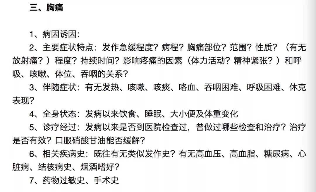 2、主要症状特点:发作急缓程度?病程?疼痛出现时间?部位?范围?性质?程度?持续时间?加重或缓解因素(和咳嗽、喷嚏、体位的关系)?