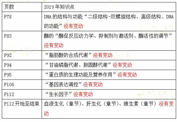 2019年临床执业医师医学综合指导用书已经公布,经过与2018年应试指南对比,生物化学课程教材变化很大,基本上除去下述内容,都有变动,希望各位考生在复习的时候注意: 上文关于“2019年临床执业医师考试生物化学科目教材变化”的文章由博傲网校编辑整理搜集,希望可以帮助到大家! 19年来,我们只做医考培训,我们不是招生最多的,但我们是合格率最高的!医考热线电话:400-6286615 你想知道医考合格的秘籍吗?扫描微信二维码直接加QQ群,即可提前获取最新必考知识点或 最新考试资讯: 临床执业/助理医师问题讨论群:249310992 扫一扫直接加QQ学习群 扫描立即做题 [海量试题][历年真题]等你练!