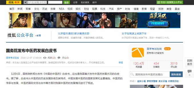 媒体来源搜狐网 12月6日,国务院新闻办发布《中国的中医药》白皮书,这也是我国首次发布中医药发展状况的白皮书。据了解,白皮书从中医药的历史发展脉络及其特点、中国发展中医药的国家政策和主要措施、中医药的传承与发展、中医药国际交流与合作等方面对我国中医药的发展情况进行了概述。 国家卫生计生委副主任、国家中医药管理局局长王国强表示,在推进“健康中国”建设过程中,中医药在普及健康生活方式,在“治未病”、重大疾病防治、康复以及完善健康保障方面都能发挥重要作用,在建设健康环境方面,中医药也具有优势,“治未病”即采取相应的措施,防止疾病的发生发展。其在中医中的主要思想是:未病先防和既病防变。 中医药“整体化、个体化、治未病”等理念意蕴深远 国务院新闻办新闻发言人袭艳春表示,中医药作为中华文明的杰出代表,是中国各族人民在几千年生产生活实践和与疾病做斗争中逐步形成并不断丰富发展的医学科学,不仅为中华民族繁衍昌盛做出了卓越贡献,也对世界文明进步产生了积极影响。 白皮书显示,中医药在历史发展进程中,兼容并蓄、创新开放,形成了独特的生命观、健康观、疾病观、防治观,实现了自然科学与人文科学的融合和统一,蕴含了中华民族深邃的哲学思想。随着健康观念变化和医学模式转变,中医药越来越显示出独特价值,并形成了鲜明的特点,包括重视整体,注重“平”与“和”,强调个体化,突出“治未病”,使用简便等。 从历史上看,中华民族屡经天灾、战乱和瘟疫,却能一次次转危为安,人口不断增加、文明得以传承,中医药做出了重大贡献。近些年来,抗疟药物“青蒿素”的发明,拯救了全球特别是发展中国家数百万人的生命。2015年,中国中医科学院研究员屠呦呦因“青蒿素的发现”而获得诺贝尔生理学或医学奖,更是让世界见证了传统中医药的魅力。 确实,随着我国社会由温饱向小康转型,慢病也如影随形,严重威胁着人民群众的健康。当前我国居民的主要健康指标,总体上优于中高收入国家的平均水平。但物质生活水平的提高,生活方式的改变,也使“富贵病”日渐增多,高血压、糖尿病、心脑血管疾病呈现爆发式增长,“未富先病”成为奔小康路上的拦路石,也让百姓的幸福指数打了折扣。习近平总书记指出,“没有全民健康,就没有全面小康”。前不久发布的《“健康中国2030”规划纲要》,确立了“以促进健康为中心”的“大健康”观,提出预防为主、关口前移,推进健康生活方式,减少疾病发生,推动社会共建共享,人人自主自律,实现全民健康。 面对慢病肆虐,顺着既有路子走下去,显然不可持续,转换思路才是根本出路。从根本上说,慢病就是生活方式病。因此,预防胜于治疗,只有全社会参与健康促进事业,才能使全体人民健康水平得到提升,也才能有效减少患病人群,从根本上扭转医疗的被动局面。 正是在这样的大背景下,古老的中医药又一次走到了医学的聚光灯下。历经千年的中医药,始终把人放在首位,经过不断丰富发展,形成了独特的生命观、健康观、疾病观、防治观,实现了自然科学与人文科学的融合和统一。“治未病”是中医药的核心理念,在现代医学产生之前,靠着一根银针、一把草药,中医药护佑着中华民族生生不息的生命传承,并从望闻问切的诊治,拓展到天人合一的生命哲学观。这种医养结合的健康观早已融入中国人的生活方式。“虚邪贼风,避之有时”,这类因时而动的保健方法,至今仍在民间有着强大的生命力。放眼全球,现代医学的兴起,曾令人们兴奋于找到了开启健康大门的钥匙,然而,今天更多的人已经看到现代医疗的局限,面对医疗难题,许多国家开始把眼光投向东方传统医学,中医药也越来越显示出其独特价值。我们相信,古老的中医药将在新时代焕发新活力,为人类文明作出新贡献。 本文媒体地址:http://mt.sohu.com/20161207/n475216315.shtml 更多学习技巧请关注"yaoshiv"微信公众平台 我们能押中考题,当然知道考什么!课程咨询热线:400-650-6615 我们连续三年押中30道以上的原题,扫描下面的“yaoshiv”微信二维码或加QQ群号,即可提前获取最新必考知识点,说不定有考试原题哦: QQ群:执业药师交流3群227510343、中药群:291876905 西药群:290551102、 2元众筹群579383454、 免费课件领取群129224834 扫一扫二维码关注博傲藥師 博傲金题App免费下载,历年真题一网打尽!