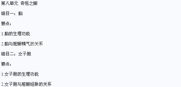 2018中医执业助理医师《中医基础理论》大纲现已公布,博傲网校的小编特为大家整理如下,希望可以对报考中医执业助理医师的考生有帮助。 免费下载:2018中医执业助理医师《中医基础理论》考试大纲.doc 第一单元 中医学理论体系的主要特点 细目一:整体观念 要点: 1.整体观念的概念 2.整体观念的内容 细目二:辨证论治 要点: 1.病、证、症的概念和关系 2.辨证论治的概念 3.同病异治和异病同治 第二单元 精气学说 细目一:精气学说的概念 要点: 1.精的概念 2.气的概念 细目二:精气学说的基本内容 要点: 1.精气的运动与变化 2.天地精气化生为人 细目三:精气学说在中医学中的应用 要点: 1.构建中医学的精气生命理论 2.构建中医学的整体观念 第三单元 阴阳学说 细目一:阴阳的概念 要点: 1.阴阳的含义 2.事物阴阳属性的绝对性和相对性 细目二:阴阳学说的基本内容 要点: 1.阴阳对立制约 2.阴阳互根互用 3.阴阳交感互藏 4.阴阳的消长 5.阴阳的转化 细目三:阴阳学说在中医学中的应用 要点: 1.在组织结构和生理机能方面的应用 2.在病理方面的应用 3.在疾病诊断方面的应用 4.在疾病预防和治疗方面的应用 第四单元 五行学说 细目一:五行学说的概念 要点: 1.五行的含义 2.五行的特性和事物与现象的五行归类 细目二:五行学说的基本内容 要点: 1.五行相生与相克 2.五行制化 3.五行相乘与相侮 4.五行的母子相及 细目三:五行学说在中医学中的应用 要点: 1.在生理方面的应用 2.在病理方面的应用 3.在疾病诊断方面的应用 4.在疾病治疗方面的应用 第五单元 藏象学说 要点: 五脏、六腑、奇恒之腑的生理特点及临床意义 第六单元 五脏 细目一:五脏的生理功能与特性 要点: 1.心的生理功能与特性 2.肺的生理功能与特性 3.脾的生理功能与特性 4.肝的生理功能与特性 5.肾的生理功能与特性 细目二:五脏之间的关系 要点: 1.心与肺的关系 2.心与脾的关系 3.心与肝的关系 4.心与肾的关系 5.肺与脾的关系 6.肺与肝的关系 7.肺与肾的关系 8.肝与脾的关系 9.肝与肾的关系 10.脾与肾的关系 细目三:五脏与五体、五官九窍、五志、五液和季节的关系 要点: 1.五脏与五体的关系 2.五脏的外华 3.五脏与五官九窍的关系 4.五脏与五志的关系 5.五脏与五液的关系 第七单元 六腑 细目一:六腑的生理功能 要点: 1.胆的生理功能 2.胃的分部名称、生理功能和生理特性 3.小肠的生理功能 4.大肠的生理功能 5.膀胱的生理功能 6.三焦的概念和生理功能 细目二:五脏与六腑之间的关系 要点: 1.心与小肠的关系 2.肺与大肠的关系 3.脾与胃的关系 4.肝与胆的关系 5.肾与膀胱的关系 第九单元 精、气、血、津液 细目一:精 要点: 1.人体之精的概念 2.人体之精的功能 3.人体之精的分类 细目二:气 要点: 1.人体之气的概念 2.人体之气的生成 3.人体之气的运动与气化 4.人体之气的功能 5.人体之气的分类 细目三:血 要点: 1.血的基本概念 2.血的生成 3.血的运行 4.血的功能 细目四:津液 要点: 1.津液的基本概念 2.津液的生成输布与排泄 3.津液的功能 细目五:精、气、血、津液之间的关系 要点: 1.气与血的关系 2.气与津液的关系 3.精、血、津液之间的关系 4.精、气、神之间的关系 第十单元 经络 细目一:经络学说概述 要点: 1.经络的基本概念 2.经络系统的组成 细目二:十二经脉 要点: 1.十二经脉的走向规律 2.十二经脉的交接规律 3.十二经脉的分布规律 4.十二经脉的表里关系 5.十二经脉的流注次序 细目三:奇经八脉 要点: 1.奇经八脉的含义及特点 2.奇经八脉的主要功能 3.督脉、任脉、冲脉、带脉、跷脉和维脉的循行特点和基本功能 细目四:经别、别络,经筋,皮部 要点: 1.经别的概念、特点和生理功能 2.别络的概念、特点和生理功能 3.经筋的概念、特点和生理功能 4.皮部的概念和应用 细目五:经络的生理功能和经络学说的应用 要点: 1.经络的生理功能 2.经络学说的应用 第十一单元 体质 细目一:体质的概念和构成 要点: 1.体质的概念 2.体质的构成 3.体质的特点 细目二:体质学说的应用 要点: 1.体质与发病 2.体质与病因病机 3.体质与诊治 4.体质与养生 第十二单元 病因 细目一:六淫 要点: 1.六淫的概念 2.六淫的共同致病特点 3.六淫各自的性质及致病特点 (1)风邪的性质及致病特点 (2)寒邪的性质及致病特点 (3)暑邪的性质及致病特点 (4)湿邪的性质及致病特点 (5)燥邪的性质及致病特点 (6)火(热)邪的性质及致病特点 细目二:疠气 要点: 1.疠气的概念 2.疠气的致病特点 细目三:七情内伤 要点: 1.七情内伤的基本概念 2.七情与脏腑精气的关系 3.七情内伤的致病特点 细目四:饮食失宣 要点: 1.饮食不节 2.饮食不洁 3.饮食偏嗜 细目五:劳逸失度 要点: 1.过度劳累 2.过度安逸 细目六:痰饮 要点: 1.痰饮的概念 2.痰饮的形成 3.痰饮的致病特点 细目七:瘀血 要点: 1.瘀血的概念 2.瘀血的形成 3.瘀血的致病特点 4.瘀血致病的症状特点 第十三单元 发病 细目一:发病的基本原理 要点: 1.正气与邪气的概念 2.正气不足是疾病发生的内在因素 3.邪气是发病的重要条件 4.邪正相搏的胜负与发病 细目二:影响发病的主要因素 要点: 1.环境与发病 2.体质与发病 3.精神状态与发病 细目三:发病类型 要点: 1.感邪即发 2.徐发 3.伏而后发 4.继发 5.合病 6.复发 第十四单元 病机 细目一:邪正盛衰 要点: 1.邪正盛衰与虚实变化 2.邪正盛衰与疾病转归 细目二:阴