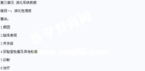 2018年中医助理医师《内科学》考试大纲已经公布,为了方便广大2018年中医助理医师考生查看,博傲网校小编特将2018年中医助理医师《内科学》考试大纲的详细内容整理如下,供考生们查看! 第一单元 呼吸系统疾病 细目一:慢性阻塞性肺疾病 要点: 1.病因 2.临床表现 3.并发症 4.实验室检查及其他检查 5.诊断 6.治疗 细目二:慢性肺源性心脏病 要点: 1.病因 2.临床表现 3.并发症 4.实验室检查及其他检查 5.诊断与鉴别诊断 6.治疗 细目三:支气管哮喘 要点: 1.概念、病因 2.临床表现 3.实验室检查及其他检查 4.诊断与鉴别诊断 5.治疗 细目四:肺炎 要点: 1.概述 (1)概念 (2)分类 2.肺炎链球菌肺炎 (1)病因 (2)临床表现 (3)并发症 (4)实验室检查及其他检查 (5)诊断 (6)治疗 细目五:原发性支气管肺癌 要点: 1.病因 2.临床表现 3.实验室检查及其他检查 4.诊断 5.治疗 第二单元 循环系统疾病 细目一:心力衰竭 要点: 1.病因 2.临床分型 3.心功能分级 细目二:慢性心力衰竭 要点: 1.临床表现 2.实验室检查及其他检查 3.诊断 4.治疗 细目三:心律失常 要点: 1.分类 2.过早搏动 (1)心电图诊断 (2)治疗 3.心房颤动 (3)心电图诊断 (4)治疗 细目四:原发性高血压 要点: 1.病因 2.临床表现 3.并发症 4.实验室检查及其他检查 5.诊断 6.治疗 细目五:冠状动脉粥样硬化性心脏病 要点: 临床分型 细目六:心绞痛 要点: 1.发病机制 2.临床表现 3.实验室检查及其他检查 4.诊断与鉴别诊断 5.治疗 细目七:心肌梗死 要点: 1.发病机制 2.临床表现 3.实验室检查及其他检查 4.诊断 5.治疗 要点: 1.病因 2.病理 3.临床表现 4.实验室检查及其他检查 5.诊断 6.治疗 细目三:肝硬化 要点: 1.病因 2.临床表现 3.并发症 4.实验室检查及其他检查 5.诊断 6.治疗 细目四:原发性肝癌 要点: 1.病因 2.临床表现 3.实验室检查及其他检查 4.诊断 5.治疗 第四单元 泌尿系统疾病 细目一:慢性肾小球肾炎 要点: 1.病因 2.临床表现 3.实验室检查及其他检查 4.诊断 5.治疗 细目二:尿路感染 要点: 1.病因 2.临床表现 3.实验室检查及其他检查 4.诊断 5.治疗 第五单元 血液系统疾病 细目一:缺铁性贫血 要点: 1.病因 2.临床表现 3.实验室检查及其他检查 4.诊断 5.治疗 细目二:再生障碍性贫血 要点: 1.病因 2.临床表现 3.实验室检查及其他检查 4.诊断 5.治疗 细目三:急性白血病 要点: 1.病因 2.临床表现 3.实验室检查及其他检查 4.诊断 5.治疗 第六单元 内分泌与代谢疾病 细目一:甲状腺功能亢进症 要点: 1.病因 2.临床表现 3.实验室检查及其他检查 4.诊断 5.治疗 细目二:糖尿病 要点: 1.概念与分类 2.病因 3.临床表现 4.并发症 5.实验室检查及其他检查 6.诊断 7.治疗 第七单元 结缔组织病 细目:类风湿关节炎 要点: 1.病因 2.临床表现 3.实验室检查及其他检查 4.诊断 5.治疗 第八单元 神经系统疾病 细目一:脑梗死 要点: 1.病因 2.临床表现 3.实验室检查及其他检查 4.诊断 5.治疗 细目二:脑出血 要点: 1.病因 2.临床表现 3.实验室检查及其他检查 4.诊断 5.治疗 第九单元 常见急危重症 细目一:心脏骤停 要点: 1.概念 2.病因 3.诊断 4.心肺复苏 细目二:休克 要点: 1.概念 2.病因与分类 3.临床表现 4.诊断 5.治疗 细目三:上消化道出血 要点: 1.概念 2.病因 3.临床表现 4.诊断 5.治疗 细目四:急性中毒 要点: 1.概述 (1)病因 (2)诊断原则 (3)治疗原则 2.急性一氧化碳中毒 (1)病因与中毒机制 (2)临床表现 (3)诊断 (4)治疗 3.急性有机磷杀虫药中毒 (1)病因与中毒机制 (2)临床表现 (3)诊断 (4)治疗 19年来,我们只做医考培训,我们不是招生最多的,但是我们是通过率最高的!医师考试通过率低,怎么才能一考过关呢?通关技巧热线:400-1680561 你想知道一考过关的秘籍吗?扫描下面的“eduyishi”微信二维码或加QQ群号,即可提前获取最新必考知识点,说不定有考试原题哦: 临床执业/助理医师问题讨论群:249310992 扫一扫关注博傲医师微信公众号 博傲金题App免费下载,注册时输入邀请码1460[海量试题][历年真题]