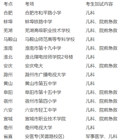 安徽省2019医师资格考试加试今日下午开始,博傲教育为各位考生收集信息如下,请相关考生注意。 参加军事医学、儿科、院前急救加试考试的考生,考试日期为8月23日下午17:00开考,各考点考场地址如下,请参加加试考生准时达到考场参加考试。 以上便是相关内容,希望能给各位考生带来帮助。 20年来,我们只做医考培训!医考热线电话:400-6286615 你想知道医考秘籍吗?扫描微信二维码直接加QQ群,即可提前获取医考知识点或考试资讯: 临床执业/助理医师问题讨论群:249310992 2019执业医师售后服务:310060480 扫一扫直接加QQ学习群 扫描立即做题 [海量练习][历年经典]等你练!