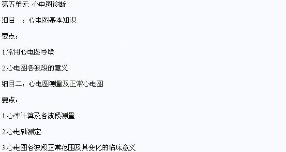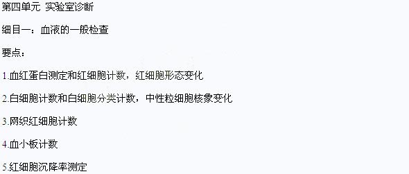 2018中医执业医师考试大纲已经公布,博傲网校将2018中医执业医师《诊断学基础》考试大纲进行汇总,希望对大家有帮助。 免费下载:2018中医执业医师《诊断学基础》考试大纲.doc 第一单元 症状学 细目一:发热 要点: 1.发热的病因 2.发热的临床表现 3.发热的问诊要点 细目二:头痛 要点: 1.头痛的病因 2.头痛的问诊要点 细目三:胸痛 要点: 1.胸痛的病因 2.胸痛的问诊要点 细目四:腹痛 要点: 1.腹痛的病因 2.腹痛的问诊要点 细目五:咳嗽与咯痰 要点: 1.咳嗽的病因 2.咳嗽与咯痰的问诊要点 细目六:咯血 要点: 1.咯血的病因 2.咯血的问诊要点 3.咯血与呕血的鉴别 细目七:呼吸困难 要点: 1.呼吸困难的病因 2.呼吸困难的临床表现 3.呼吸困难的伴随症状 细目八:水肿 要点: 1.水肿的病因 2.水肿的临床表现 3.水肿的问诊要点 细目九:皮肤黏膜出血 要点: 1.皮肤黏膜出血的病因 2.皮肤黏膜出血的临床表现 3.皮肤黏膜出血的问诊要点 细目十:恶心与呕吐 要点: 1.恶心与呕吐的病因 2.恶心与呕吐的问诊要点 细目十一:呕血与黑便 要点: 1.呕血与黑便的病因 2.呕血与黑便的问诊要点 细目十二:黄疽 要点: 1.黄疸的概念 2.胆红素的正常代谢途径 3.各型黄疸的病因、临床表现及实验室检查特点 4.黄疸的问诊要点 细目十三:抽搐 要点: 1.抽搐的病因 2.抽搐的问诊要点 细目十四:意识障碍 要点: 1.意识障碍的病因 2.意识障碍的临床表现(嗜睡、昏睡、昏迷、意识模糊、谵妄) 3.意识障碍的伴随症状 第二单元 问诊 要点:问诊的内容 第三单元 检体诊断 细目一:基本检查法 要点: 1.常用触诊方法及其适用范围和注意事项 2.叩诊的方法及常见叩诊音 3.嗅诊常见异常气味及临床意义 细目二:全身状态检查 要点: 1.体温测量 2.脉搏检查 3.血压测量 4.发育判定 5.营养状态检查 6.意识状态判定 7.面容检查 8.体位检查 9.步态检查 细目三:皮肤检查 要点: 1.弹性、颜色、湿度检查 2.皮疹、皮下出血、蜘蛛痣、皮下结节检查 3.水肿、皮下气肿和毛发检查 细目六:颈部检查 要点: 1.颈部血管检查 2.甲状腺检查 3.气管检查 细目七:胸壁及胸廓检查 要点: 1.胸部体表标志及分区 2.常见异常胸廓 3.胸壁静脉检查 4.胸壁及胸骨检查 5.乳房检查 细目八:肺和胸膜检查 要点: 1.肺和胸膜视诊(呼吸类型、频率、深度、节律) 2.肺和胸膜触诊(触觉语颤、胸膜摩擦感) 3.肺部叩诊 4.呼吸音听诊(正常呼吸音、病理性呼吸音) 5.啰音听诊 6.胸膜摩擦音听诊 7.听觉语音检查 8.呼吸系统常见疾病的体征(肺实变、肺气肿、胸腔积液、肺不张及气胸) 细目九:心脏、血管检查 要点: 1.心脏视诊(心前区隆起、心尖搏动) 2.心脏触诊(心脏震颤、心包摩擦感) 3.心脏叩诊(心脏浊音界) 4.心脏瓣膜听诊区 5.心率听诊、心律听诊 6.正常心音及其产生机制 7.心音听诊(正常心音、心音改变、喀喇音、奔马律及开瓣音) 8.心脏杂音产生机制 9.心脏杂音的特征 10.各瓣膜区常见杂音听诊 11.心包摩擦音听诊 12.血管检查及周围血管征 13.循环系统常见疾病的体征(二尖瓣狭窄与关闭不全、主动脉瓣狭窄与关闭不全、心力衰竭、大量心包积液) 细目十:腹部检查 要点: 1.腹部视诊(外形、呼吸运动、腹壁静脉、胃肠型和蠕动波) 2.腹部触诊(腹壁紧张度、压痛和反跳痛) 3.腹内脏器触诊(肝、胆、脾、肾、膀胱) 4.正常腹部可触及的结构,腹部肿块触诊 5.腹部叩诊(叩诊音,肝、脾、膀胱叩诊) 6.胃泡鼓音区和移动性浊音叩诊 7.腹部听诊(肠鸣音、上腹部振水音、血管杂音) 8.腹部常见疾病的体征(急性腹膜炎、肝硬化门静脉高压、肠梗阻) 细且十一:肛门、直肠检查 要点: 1.肛门、直肠视诊 2.肛门、直肠指诊 细目十二:脊柱与四肢检查 要点: 1.脊柱检查(弯曲度、活动度、压痛与叩击痛) 2.四肢、关节检查(形态、运动功能) 细目十三:神经系统检查 要点: 1.中枢性与周围性面神经麻痹的鉴别 2.感觉功能检查、感觉障碍及其常见类型 3.运动功能检查(肌力、肌张力、不自主运动、共济运动) 4.中枢性与周围性瘫痪的鉴别 5.神经反射检查(浅反射、深反射、病理反射、脑膜刺激征) 细目二:血栓与止血检查 要点: 1.出血时间测定 2.血小板聚集试验 3.凝血因子检测(活化部分凝血酶原时间、凝血酶原时间、血浆纤维蛋白原) 4.纤溶活性检测(D-二聚体、3P试验) 5.口服抗凝药治疗监测 细目三:骨髓检查 要点: 1.骨髓细胞学检查的临床意义 2.骨髓增生程度分级 细目四:肝脏病实验室检查 要点: 1.蛋白质代谢检查(血清蛋白测定、血清蛋白电泳) 2.胆红素代谢检查 3.血清酶及同工酶检查(ALT、AST、ALP、γ-GT、LDH) 4.甲、乙、丙型病毒性肝炎标志物检查 细目五:肾功能检查 要点: 1.肾小球功能检测(CCr、Cr、BUN、血β2-微球蛋白、GFR) 2.肾小管功能检测(尿β2-微球蛋白、莫氏试验) 3.血尿酸测定 细目六:常用生化检查 要点: 1.糖类检查(血糖、葡萄糖耐量试验、血清糖化血红蛋白) 2.血脂测定 3.电解质检查(血清钾、钠、氯、钙、磷) 4.血清铁及其代谢物测定(血清铁、铁饱和度、铁蛋白) 细目七:酶学检查 要点: 1.血、尿淀粉酶测定 2.心肌损伤常用酶检测(CK、CK-MB、LDH及其同工酶) 3.心肌蛋白检测(cTnT、cTnI) 细目八:免疫学检查 要点: 1.血清免疫球蛋白及补体测定 2.感染免疫检测(AS0、肥达反应) 3.肿瘤标志物检测(AFP、CEA、CA125、PSA、CA19-9) 4.自身抗体检查(RF、ANA、ENA抗体谱、抗双链DNA抗体、ATG、ATM) 5.C反应