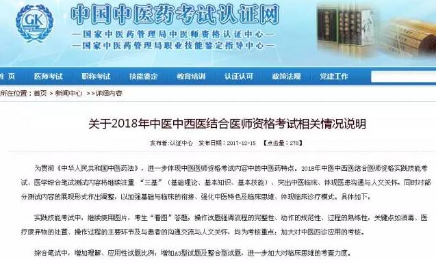 想知道2018年中医、中西医结合医师资格考试要求有哪些新变化吗?这些新变化的具体内容是什么?博傲网校小编为大家搜集到了国家中医药管理局医师资格认证中心发布的官方公告,请大家参照考试要求及对重要能力的考查要求,有的放矢,重点突破,争取2018年医师资格考试一举通关。 关于2018年中医中西医结合医师资格考试相关情况说明 为贯彻《中华人民共和国中医药法》,进一步体现中医医师资格考试内容中的中医药特点,2018年中医中西医结合医师资格实践技能考试、医学综合笔试测试内容将继续注重“三基”(基础理论、基本知识、基本技能)、突出中医临床、体现医患沟通与人文关怀,同时对部分测试内容的展现形式作出调整,以加强基础与临床的衔接、强化中医特色及临床思维、体现临床诊疗模式。具体如下: 实践技能考试中,继续使用图片,考生“看图”答题;操作试题强调流程的完整性、动作的规范性、过程的熟练性,关键点如消毒、医疗废弃物的处置、操作过程的主要环节及与患者的沟通交流与人文关怀,均为考核重点;加大对中医四诊应用的考核。 综合笔试中,增加理解、应用性试题比例;增加A3型试题及整合型试题,进一步加大对临床思维的考查力度。 以上就是2018年中医、中西医结合医师资格考试要求的新变化,希望对大家有帮助,更多考试信息及备考资讯,请关注博傲网校! 19年来,我们只做医考培训,我们不是招生最多的,但是我们是通过率最高的!医师考试通过率低,怎么才能一考过关呢?通关技巧热线:400-1680561 你想知道一考过关的秘籍吗?扫描下面的“eduyishi”微信二维码或加QQ群号,即可提前获取最新必考知识点,说不定有考试原题哦: 临床执业/助理医师问题讨论群:249310992 扫一扫关注博傲医师微信公众号 博傲金题App免费下载,注册时输入邀请码1460[海量试题][历年真题