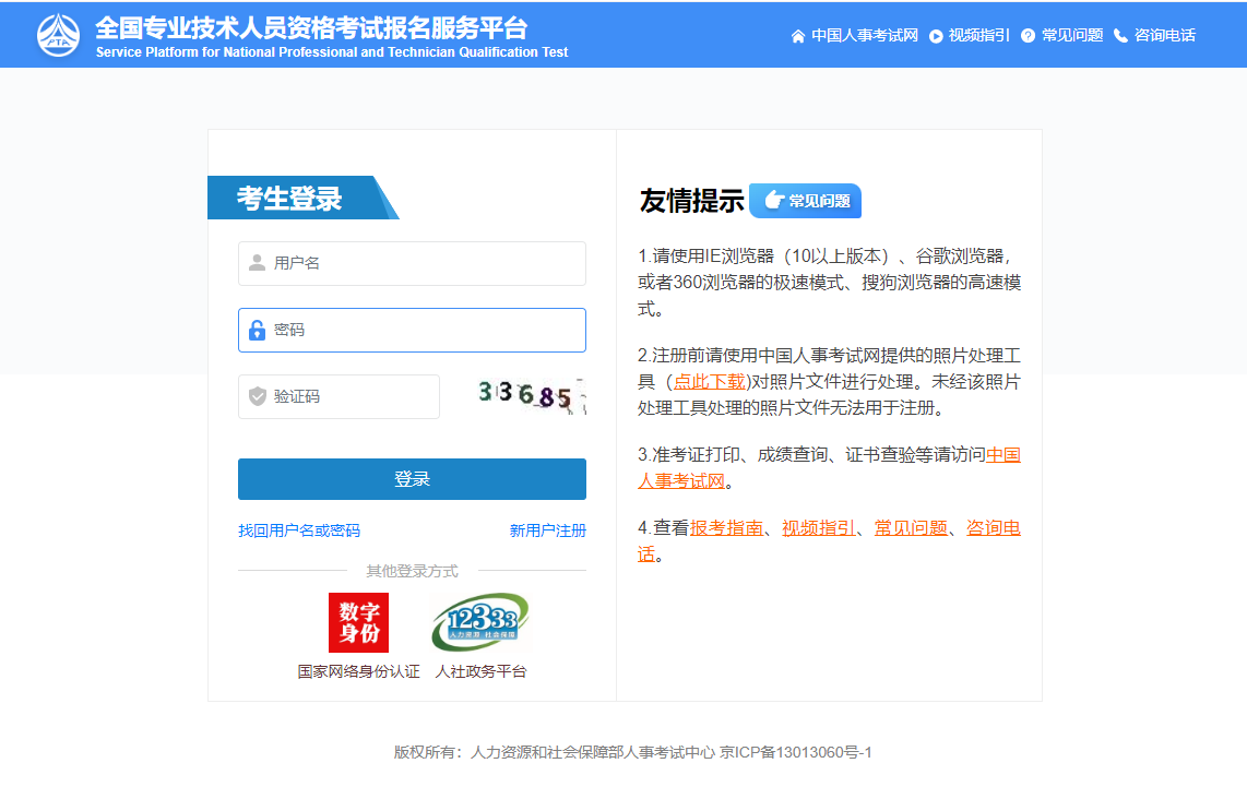 对新注册报考人员,系统将对身份、学历学位信息进行在线核验,核验及注册完成后方可继续报名。已注册报考人员须报考前先登录网上报名系统,补充完善个人信息,核验完成后方可继续报名。